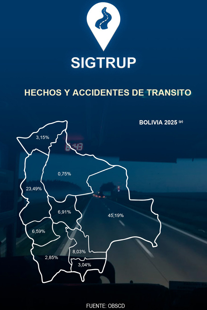 El gerente general del ACB, Cristian Zambrana, explicó que el SIGTRUP nace como respuesta a una grave problemática que enfrenta el país: el alto índice de siniestros viales en las carreteras, una situación que ubica a Bolivia en el tercer lugar a nivel regional en Sudamérica.