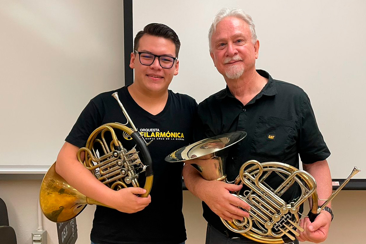 A través de un auspicio impulsado conjuntamente por la Secretaría General y la Gerencia de Alianzas Globales de CAF, la institución facilitó que Lucas Justiniano (Bolivia, corno), Kayrusan Quintero (Venezuela, violonchelo), Evelyn Priscila Rodríguez (Bolivia, viola) y Fabio Valery (Venezuela, fagot) accedieran a esta experiencia formativa de alto nivel internacional.