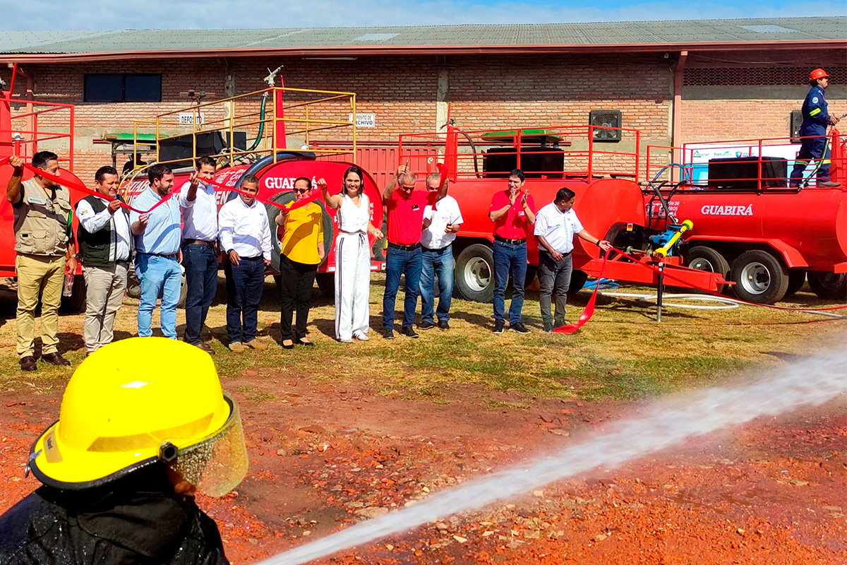 La Unión de Cañeros Guabirá (UCG) y el Ingenio Azucarero Guabirá S.A. (IAG), entregaron 20 tanques bomberos para atender de manera oportuna los incendios accidentales que pudieran darse en las zonas productoras de caña de azúcar en el Norte Integrado, renovando de esta manera su compromiso productivo y medioambiental, con innovación, sostenibilidad y responsabilidad social, haciendo fuerza común con sus productores cañeros, en aras del bienestar de toda la comunidad, enfatizaron sus autoridades.